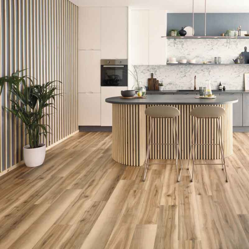 The introduction of Maple to our Van Gogh collection extends our design choices with on-trend tones and textures. In its natural form, maple is straight-grained and fine-textured. With our Natural Maple planks, subtle colouring has enhanced these natural characteristics to contrast lighter honey tones with highlights of darker browns. It provides a warm welcome and durable performance for any contemporary home interior.