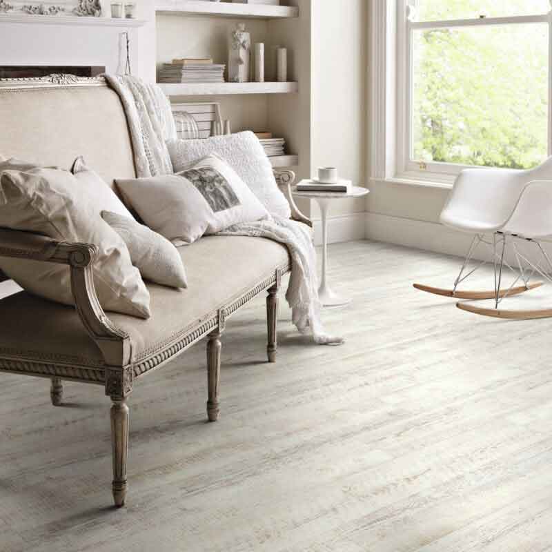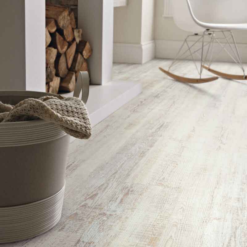 To achieve a “lived in” modern traditional or modern country feel, go for our distressed White Painted Oak planks. The chalky white painted wood stripped down to reveal beige undertones looks highly realistic – without the practical limitations of real painted hardwood.